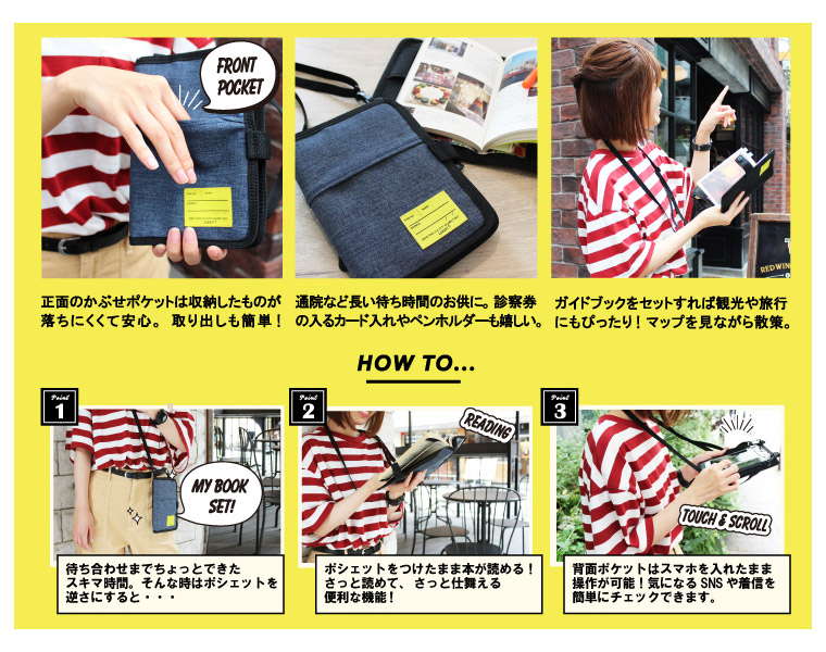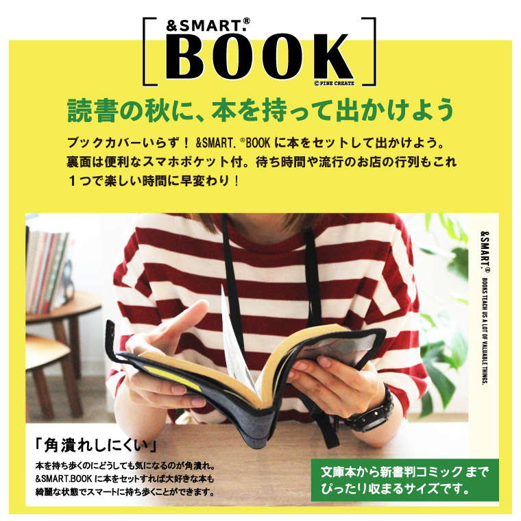 文庫本から新書判コミックまでぴったり収まる&SMART.の新型が登場! ブックカバーいらず! 本をセットしてお出かけできちゃう&SMART.BOOK! 裏面は便利なスマホポケット付! ちょっとした待ち時間や流行りのお店の行列も、これ一つで楽しい時間に早変わり! 正面のかぶせポケットは物が落ちにくく取り出しも簡単! 診察券が入るカード入れやペンホルダーが付いているのでとっても機能的。