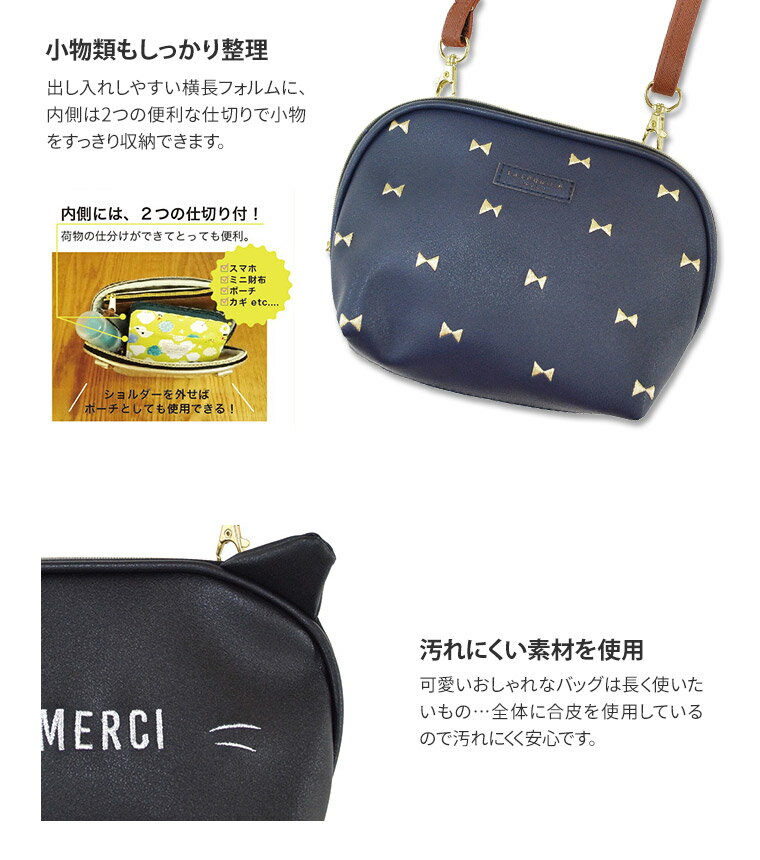 ガーリースタイルに合わせやすいシンプルなデザインです! BAGから取り出さなくてもスマホが操作できちゃう新感覚スーマトフォンポシェット! 出し入れしやすい横長フォルムに、内側は2つの便利な仕切りで小物をすっきり収納できます。